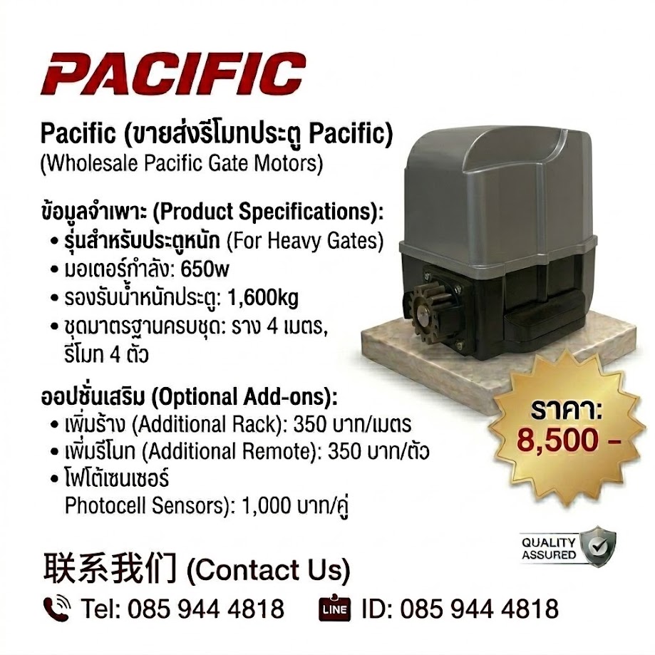 - กำลังมอเตอร์: 650W (Motor Power: 370W Automatic Gate Opener)