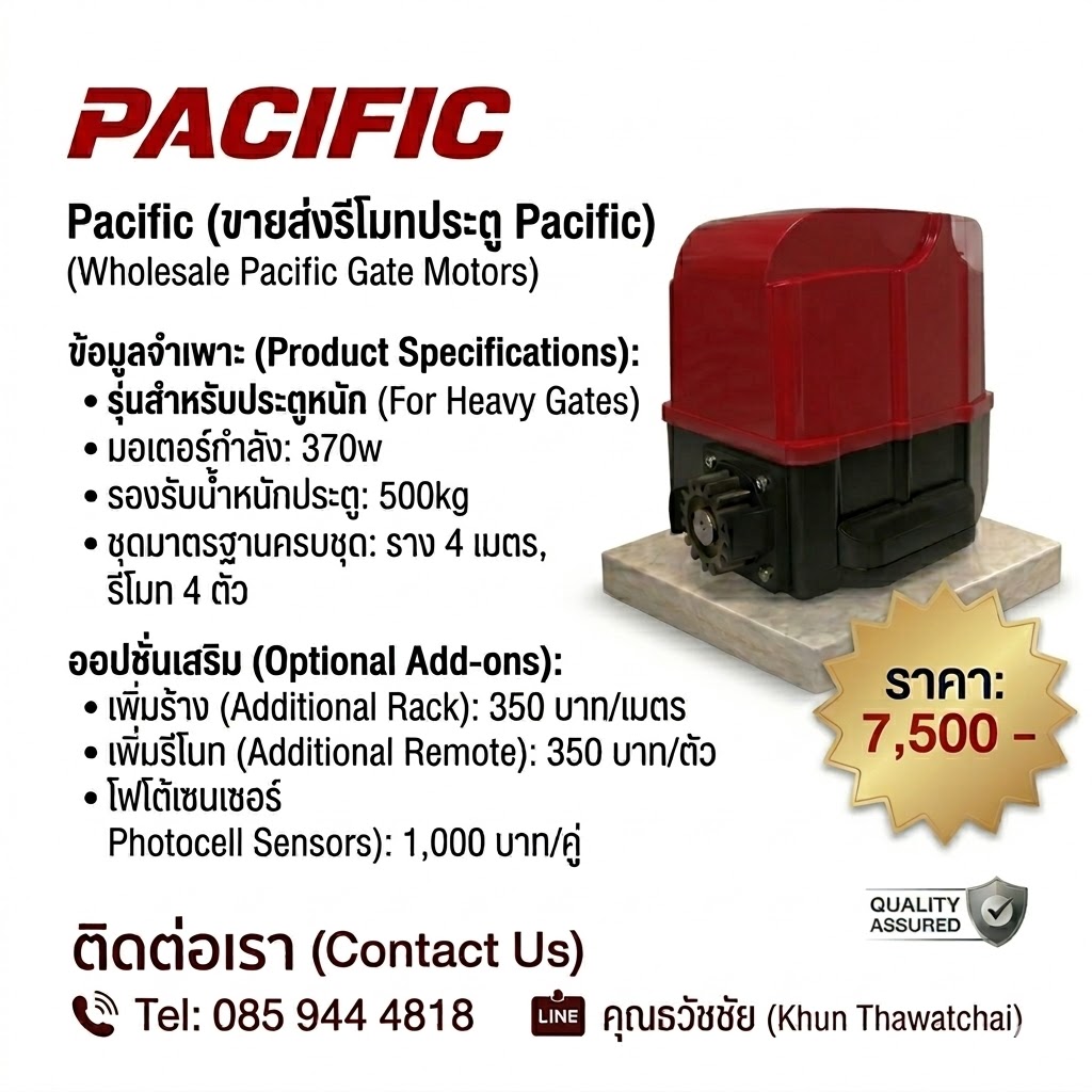 - กำลังมอเตอร์: 370W (Motor Power: 370W Automatic Gate Opener)